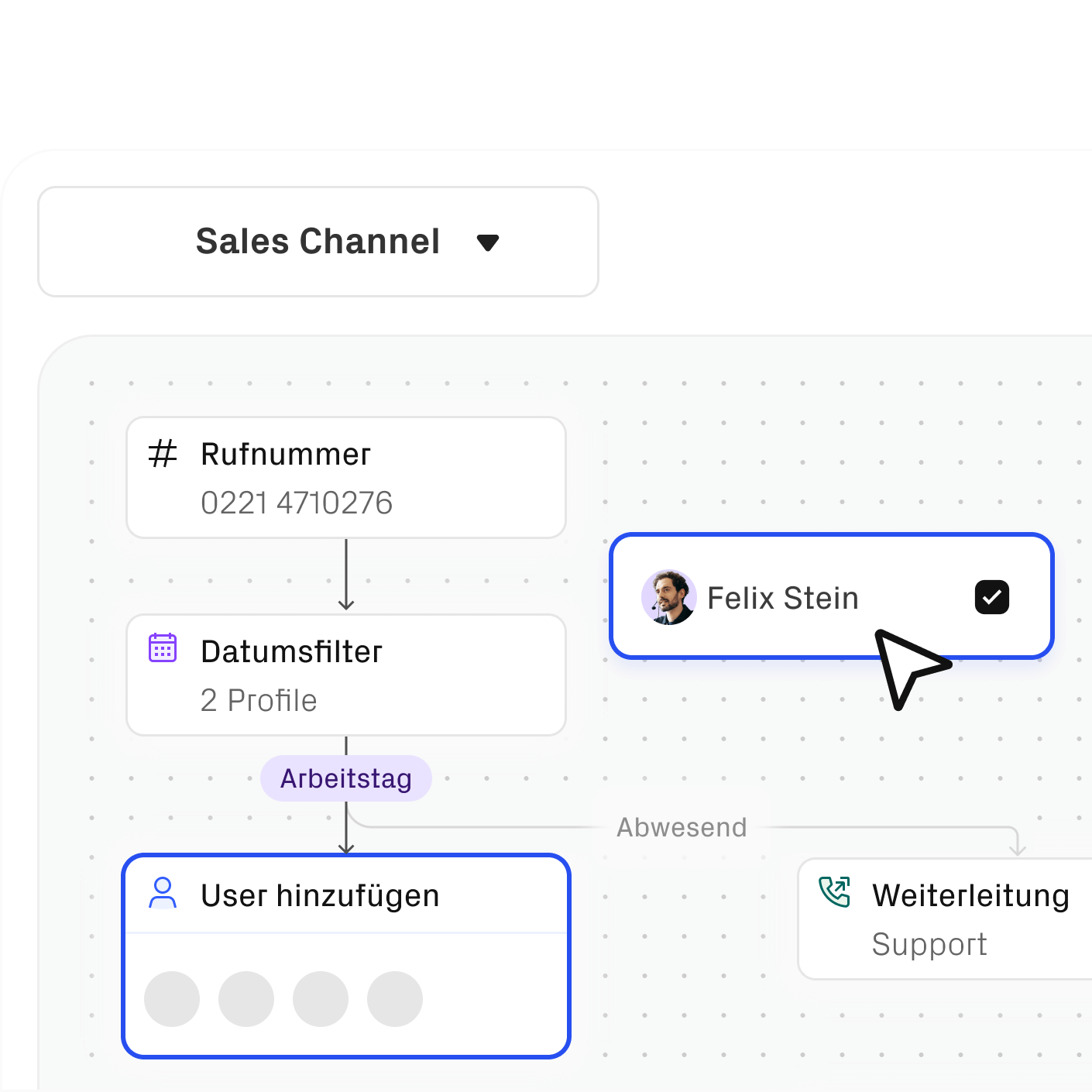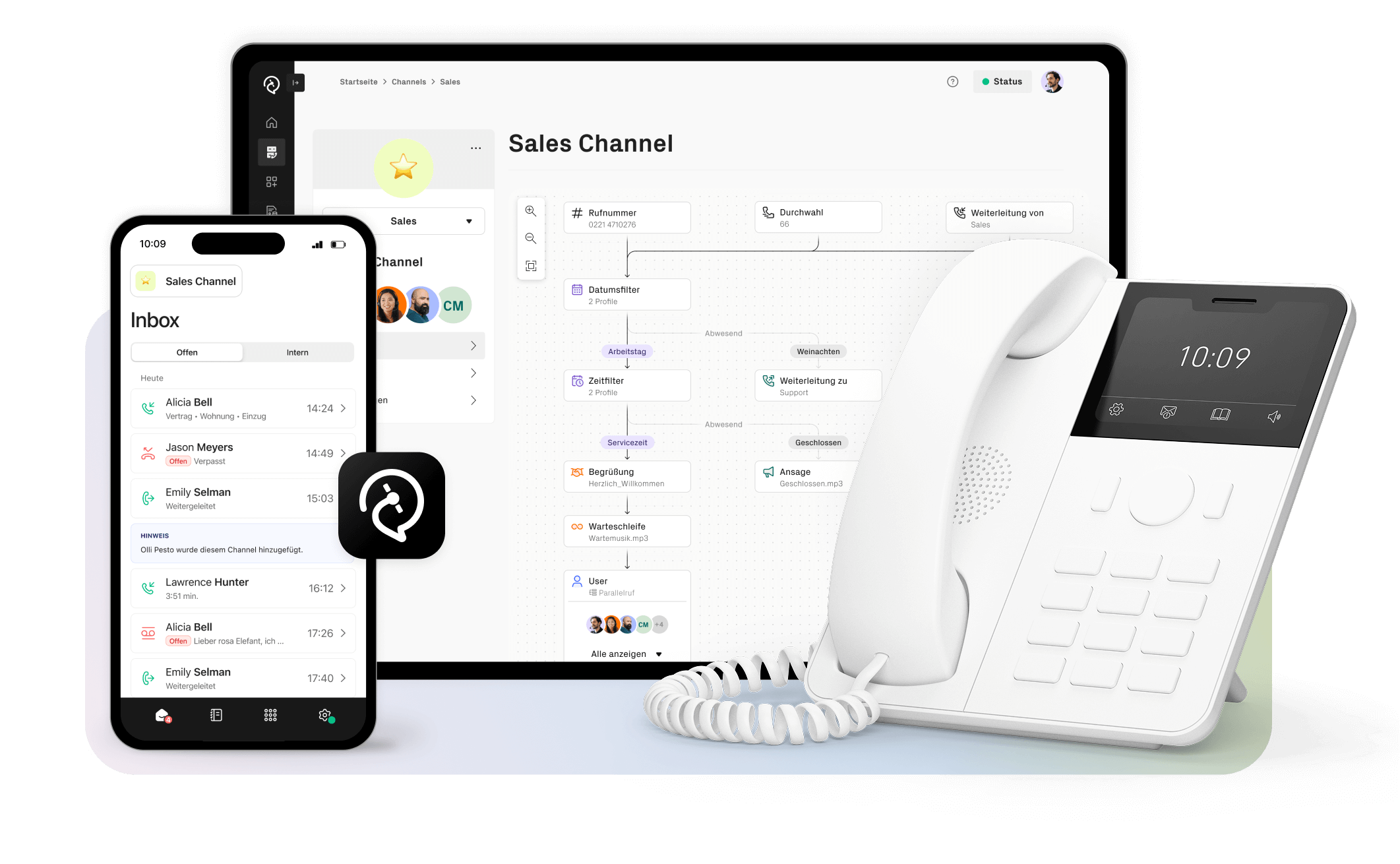 Jeder im Team kann Anrufe annehmen. Über den Channel könnt ihr beliebig viele Gespräche parallel führen. Geht mal keiner ran, sehen alle den verpassten Anruf in der gemeinsamen Anrufliste und können zurückrufen.